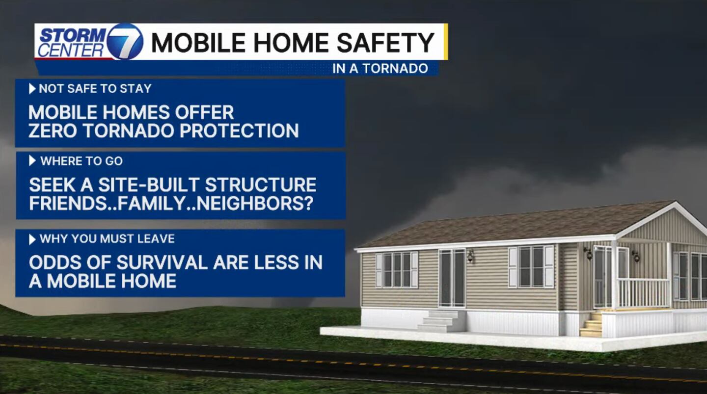 If you are inside of a mobile home, the best advice is to just leave and find a better structure. Mobile homes offer affordable housing options, but for tornadoes they are very dangerous to live in. Do you have a good friend, neighbor, or family with a better structure? If so, that is where you should go. Mobile homes are not built for withstanding tornadoes, so that is the big reason as to why you should leave.