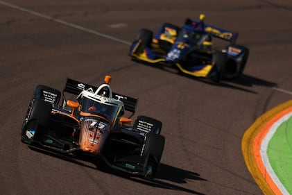 NTT INDYCAR Series Good Ranchers 250 AVONDALE, ARIZONA - MARCH 07: Nolan Siegel, driver of the #6 Arrow McLaren Chevrolet, leads a pack of cars during the NTT INDYCAR Series Good Ranchers 250 at Phoenix Raceway on March 07, 2026 in Avondale, Arizona. (Photo by Meg Oliphant/Getty Images) (Meg Oliphant/Getty Images)