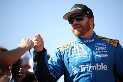 NASCAR Cup Series DuraMax Grand Prix Powered by RelaDyne AUSTIN, TEXAS - MARCH 01: Chris Buescher, driver of the #17 Trimble Ford, fist bumps NASCAR fans on the red carpet prior to the NASCAR Cup Series DuraMax Grand Prix Powered by RelaDyne at Circuit of The Americas on March 01, 2026 in Austin, Texas. (Photo by James Gilbert/Getty Images) (James Gilbert/Getty Images)